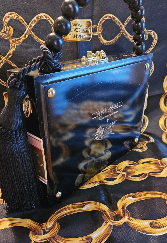 THIS IS AN AUTHENTIC CIGAR BOX PURSE, SO SMALL FLAWS INFLICTED BY THE SMOKERS OF THE CIGARS ARE TO BE EXPECTED! They only add character and charm! Large flaws will be noted in the description. If you don’t like what you see, I can do custom cigar box purses and can include anything you like!- pictures of family members, pets, places- you name it!