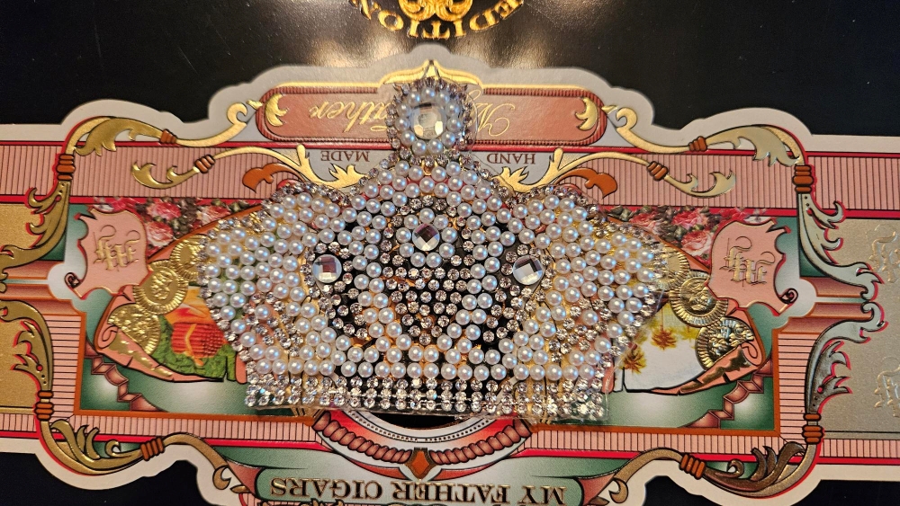 Black My Father with Pearl Crown Applique Cigar Box Purse