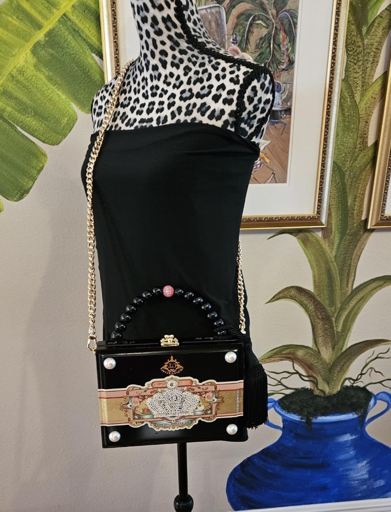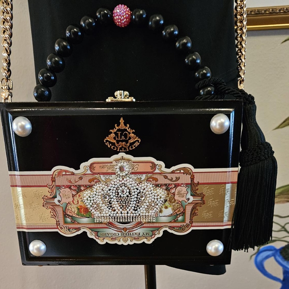2261 Black My Father with Pearl Crown Applique Cigar Box Purse