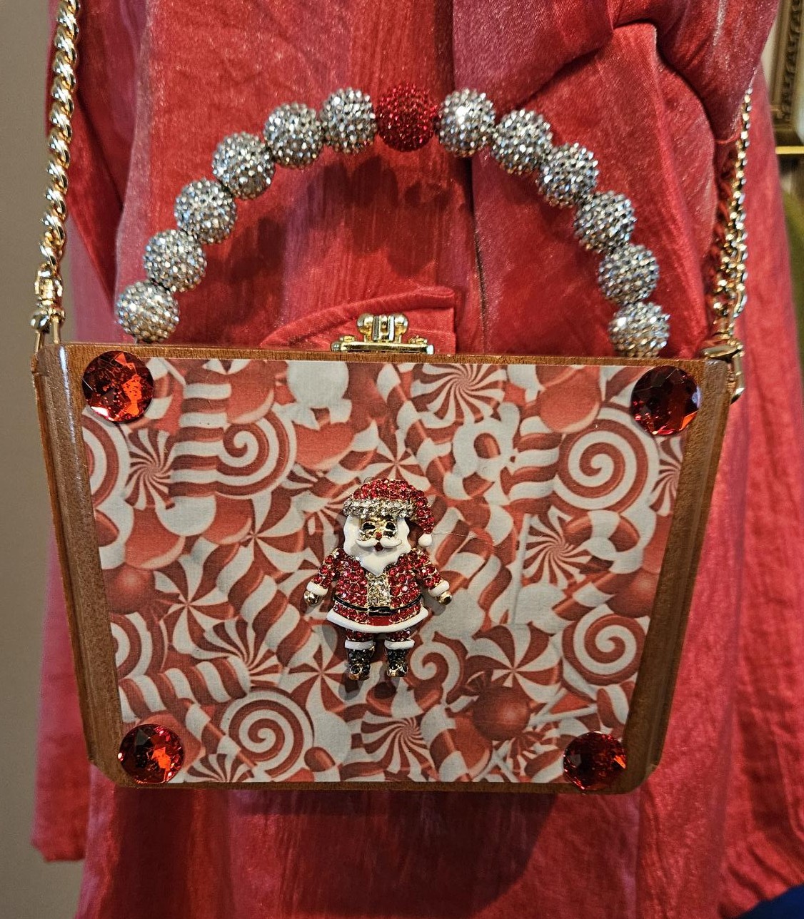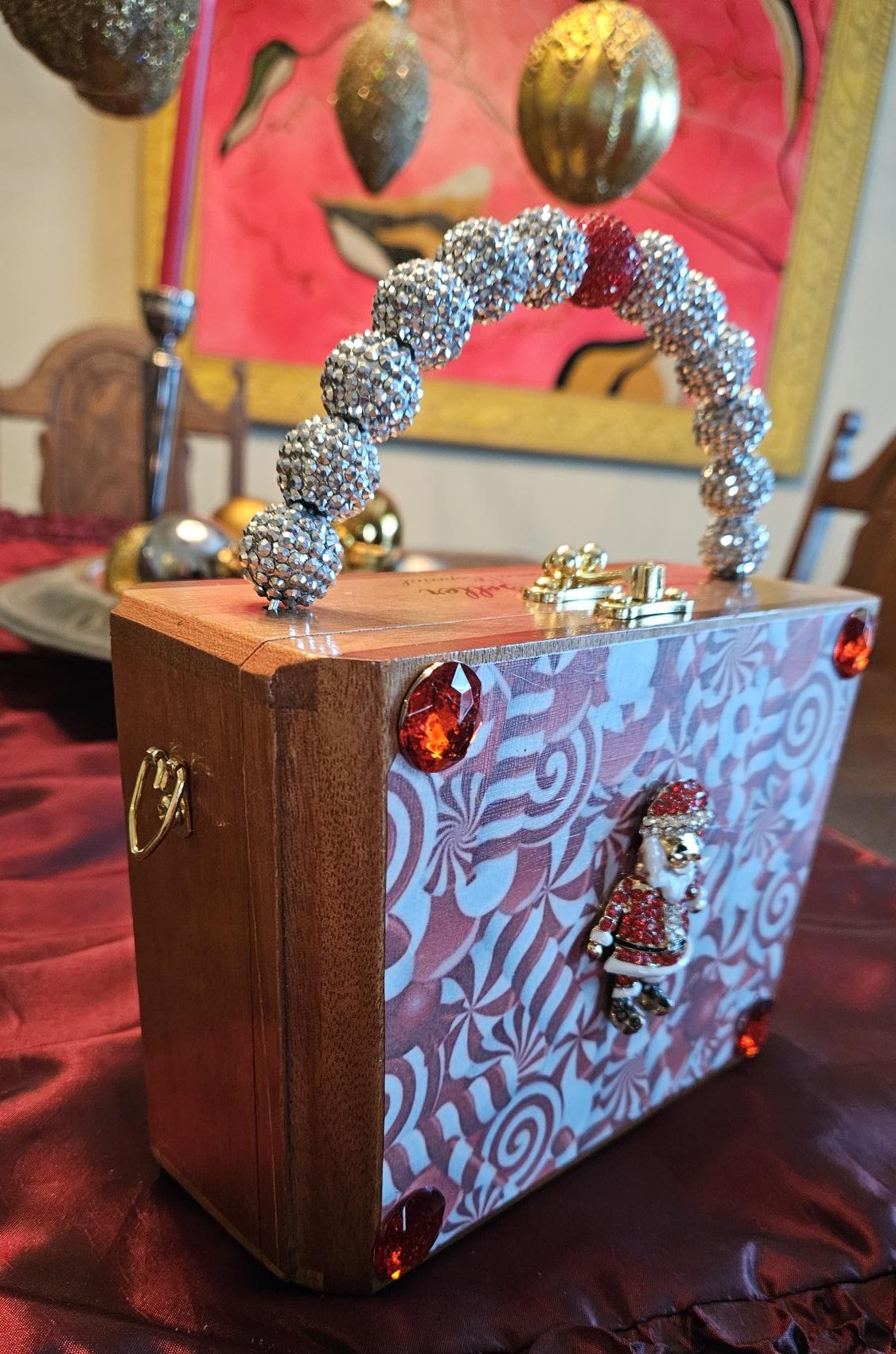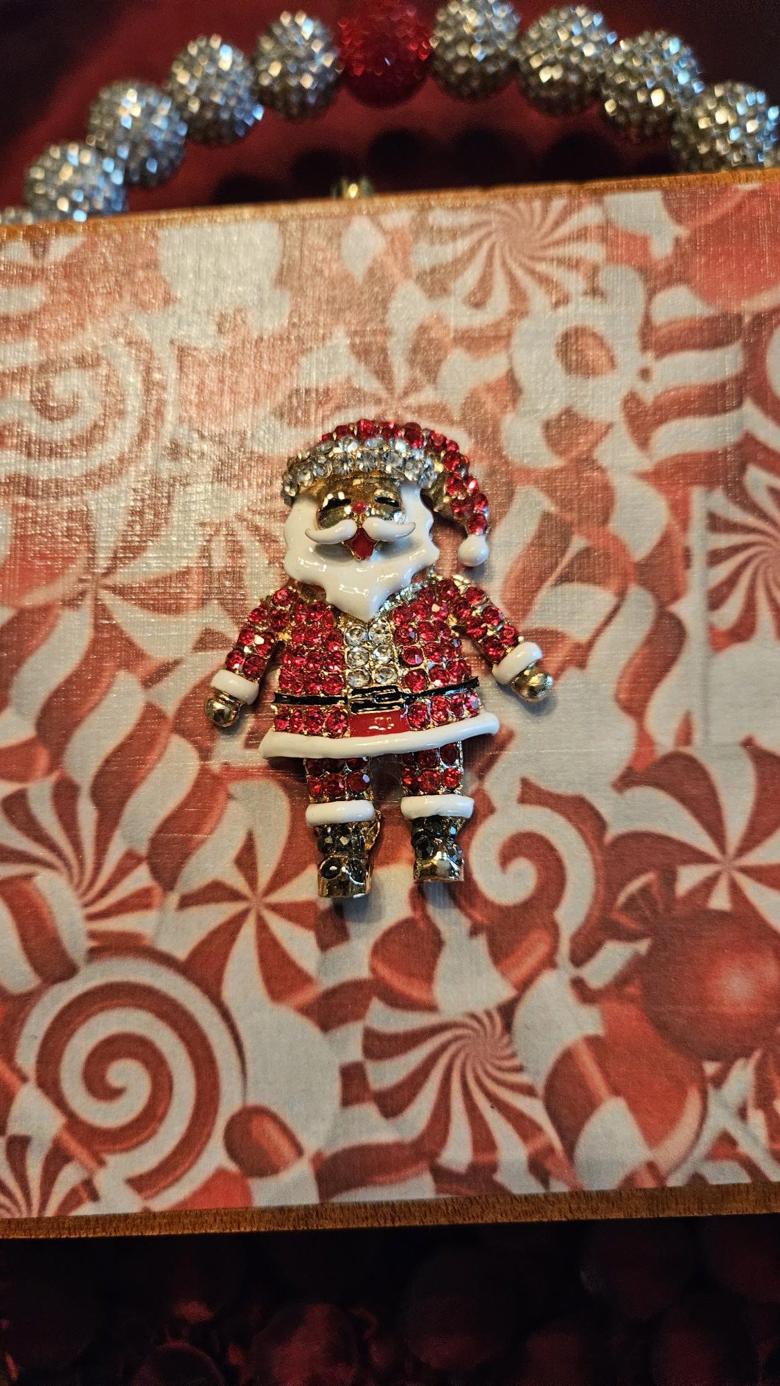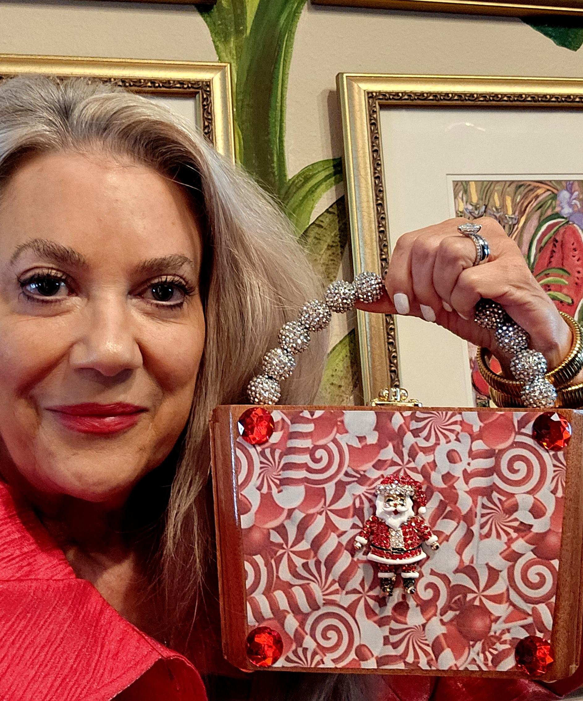 2232 Candy Cane Santa Brooch Cigar Box Purse