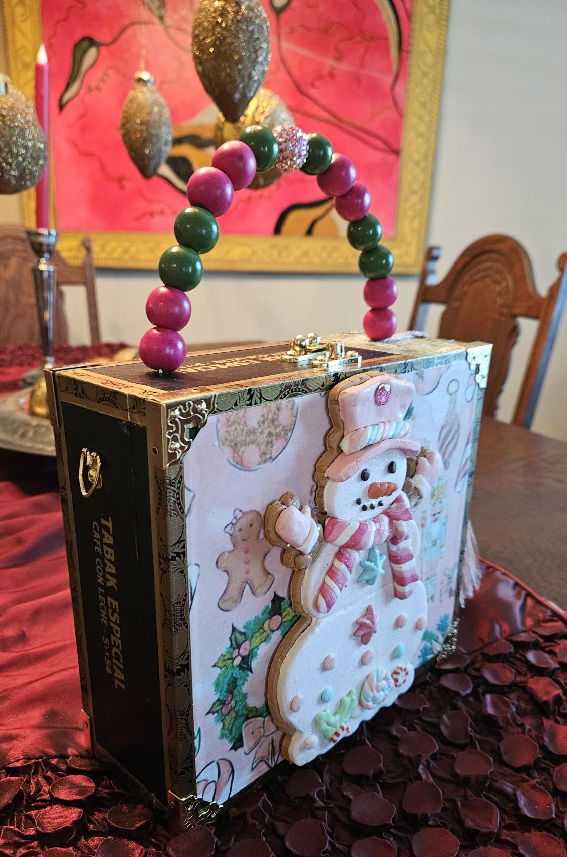 2233 Christmas Gingerbread Snowman Cigar Box Purse