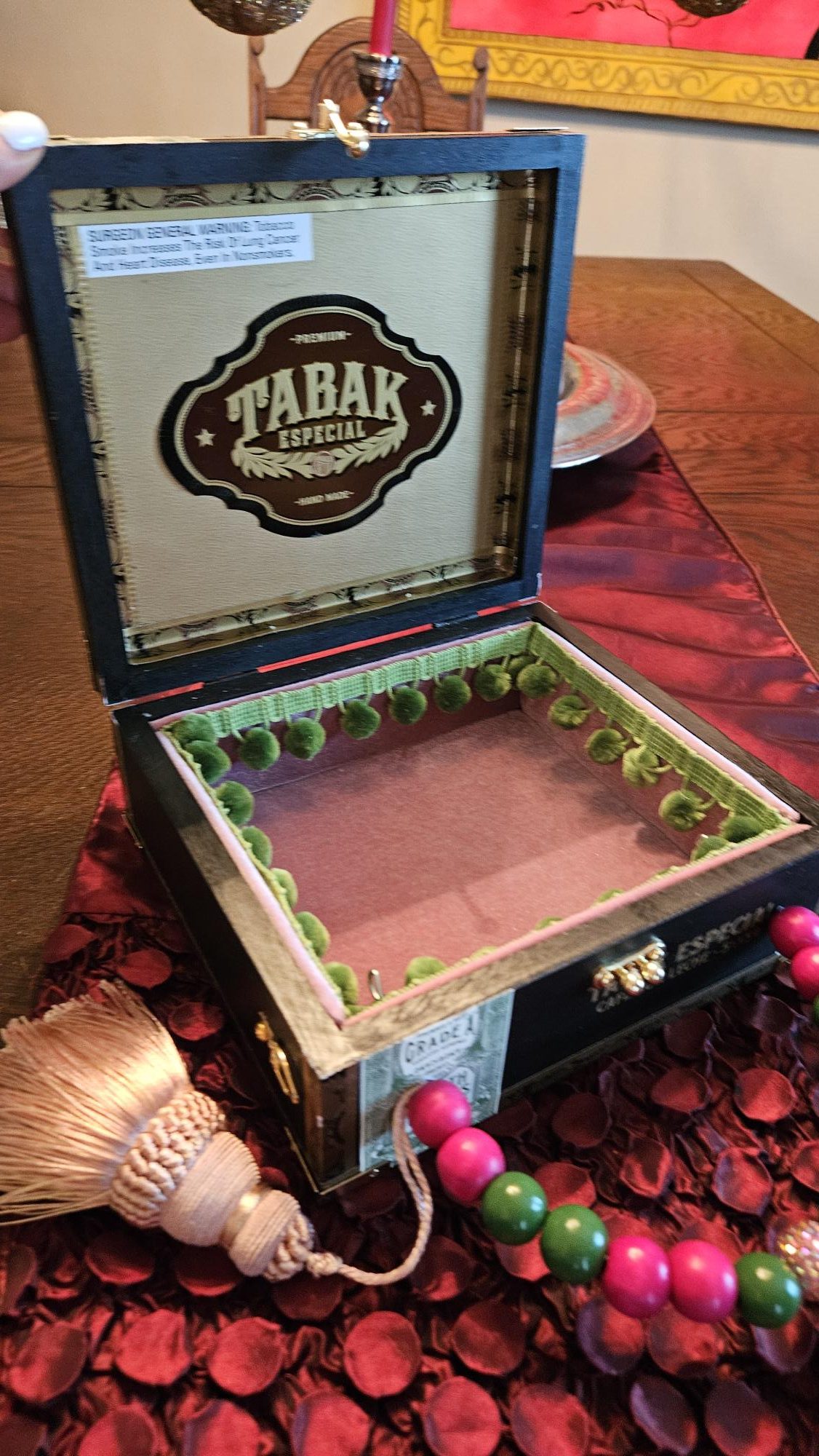 ** THIS IS AN AUTHENTIC CIGAR BOX PURSE, SO SMALL FLAWS INFLICTED BY THE  SMOKERS OF THE CIGARS ARE TO BE EXPECTED! They only add character and charm! Large flaws will be noted in the description. If you don’t like what you see, I can do custom cigar box purses and can include anything you like!- pictures of family members, pets, places- you name it! I always ship insured. Feel free to text or call with questions. 813-416-7071