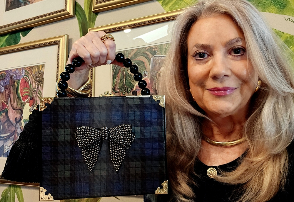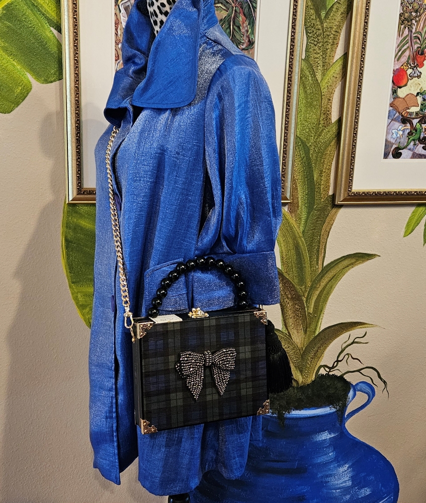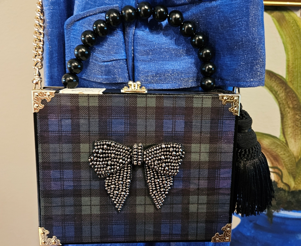 2210 Christmas Watch Plaid and Black Crystal Bow Cigar Box Purse