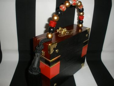 Second of two, this is another handsome Perdomo, Connecticut, 20th Anniversary, wooden, dark cherry red cigar box with the most gorgeous gold, red and black label that wraps to the back of the box. I gilded the big fleur de lis and adorned the front of this up cycled, repurposed gem with it! Gold filigree corners have been added to the front as well to further embellish! The inside of the cigar box bag has the authentic label too- just so pretty! I lined this one with padded and plush red velvet and black trim. The handle has been done with red, gold, black and red crystal beads and a black tassel. The back has been painted black and sealed. The purse has been flipped so that the opening is now on the top and has been given a gold three ball lock for security. Eight gold purse feet have been added to the back and bottom and eight gold corner protectors to the front and back for protection. Gold hardware has been attached to the sides so that you may add a strap that you already own. This makes these little cigar box purses of mine versatile in that they can be worn by the handle, over the shoulder or cross- body. I sell straps and gold and silver cross body chains too. The chain in the last photo is available, but not included. 7 x 8.5 x 3.25″ ** THIS IS AN AUTHENTIC CIGAR BOX PURSE, SO SMALL FLAWS INFLICTED BY THE SMOKERS OF THE CIGARS ARE TO BE EXPECTED! They only add character and charm! Large flaws will be noted in the description. If you don’t like what you see, I can do custom cigar box purses and can include anything you like!- pictures of family members, pets, places- you name it! I always ship insured. Feel free to call me! 813-416-7071 cell. Please sign up for email via this site to get in on sales and new products. Also please follow Humadorables by Susan on Facebook and Instagram. https://www.facebook.com/Humadorables/ https://www.instagram.com/humadorablebysusan/