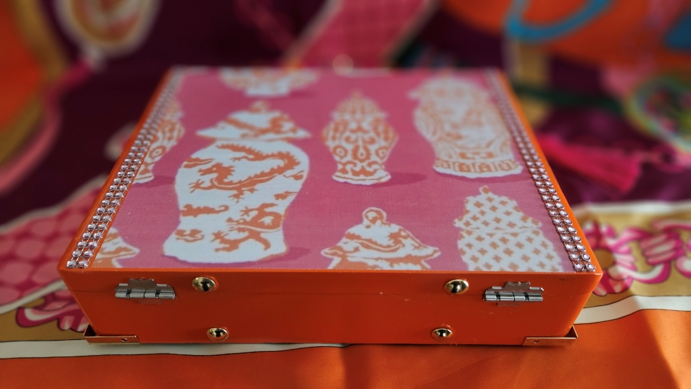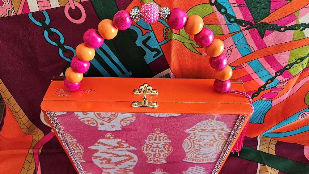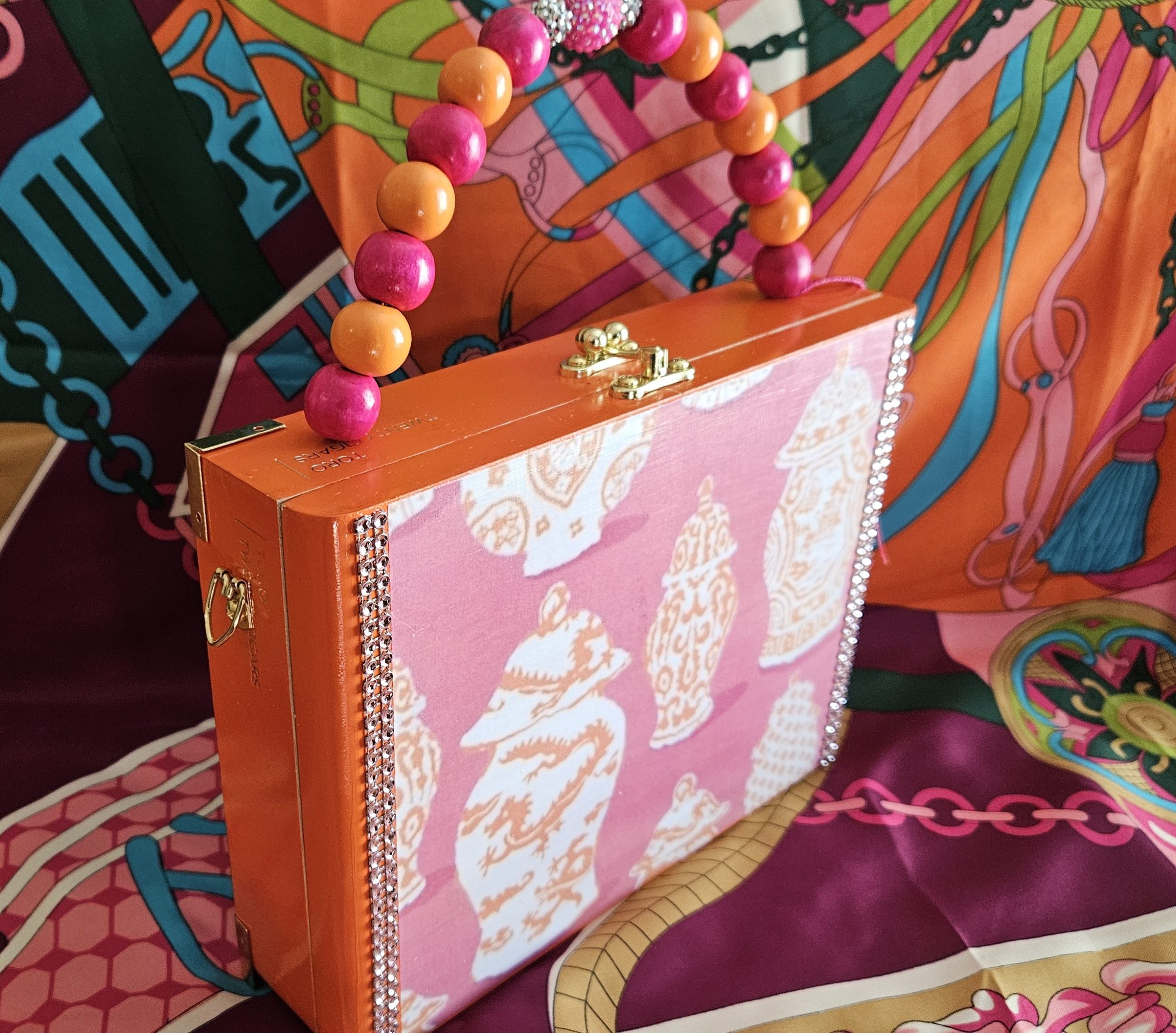 2275 Orange and Pink Ginger Jar Chinoiserie Cigar Box Purse